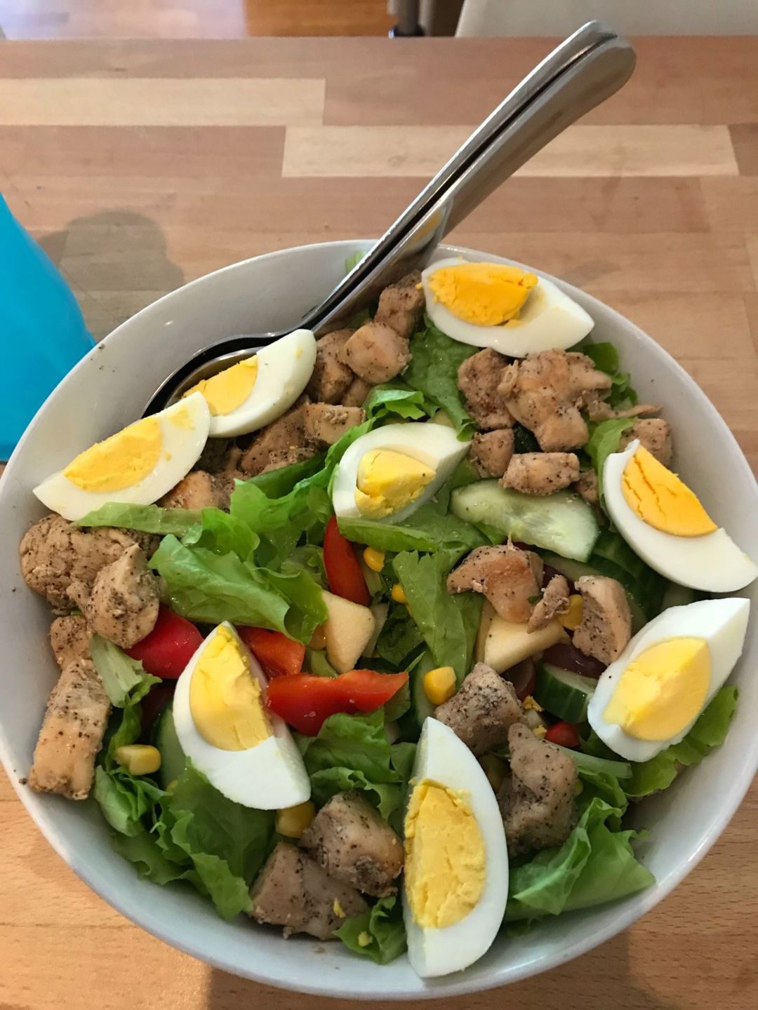 Mandag: Hjemmebakt brød med kokt egg, påleg, agurk og paprika